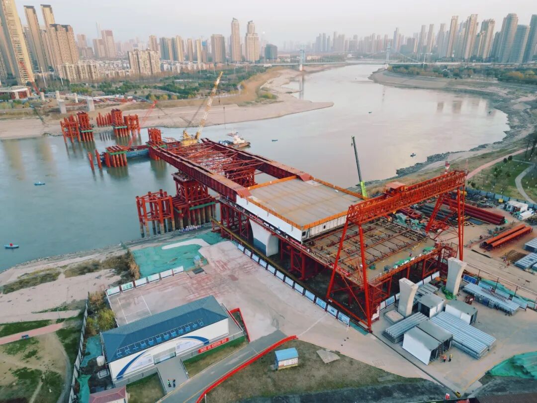 江漢十橋鋼箱梁首節(jié)段成功頂推!武漢跨漢江通道建設(shè)全面提速