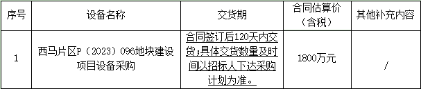 1.1項(xiàng)目名稱:西馬片區(qū)P(2023)096地塊建設(shè)項(xiàng)目設(shè)備采購(gòu)